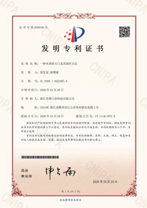 公司一直以來(lái)嚴(yán)格執(zhí)行ISO9001質(zhì)量體系和ISO14001環(huán)境管理體系標(biāo)準(zhǔn),建立了完備的科研、開(kāi)發(fā)、生產(chǎn)、銷(xiāo)售服務(wù)體系。公司是浙江省門(mén)業(yè)協(xié)會(huì)會(huì)員單位,江山門(mén)業(yè)協(xié)會(huì)理事單位,中國(guó)木材與木制品流通協(xié)會(huì)會(huì)員單位,江山市消防協(xié)會(huì)副會(huì)長(zhǎng)單位。
